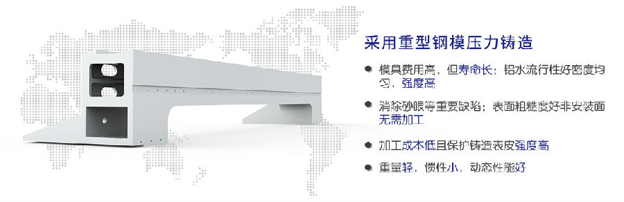 采用一體化設計思路,重型碳素機構床身,去應力退火處理、龍門銑加工中心